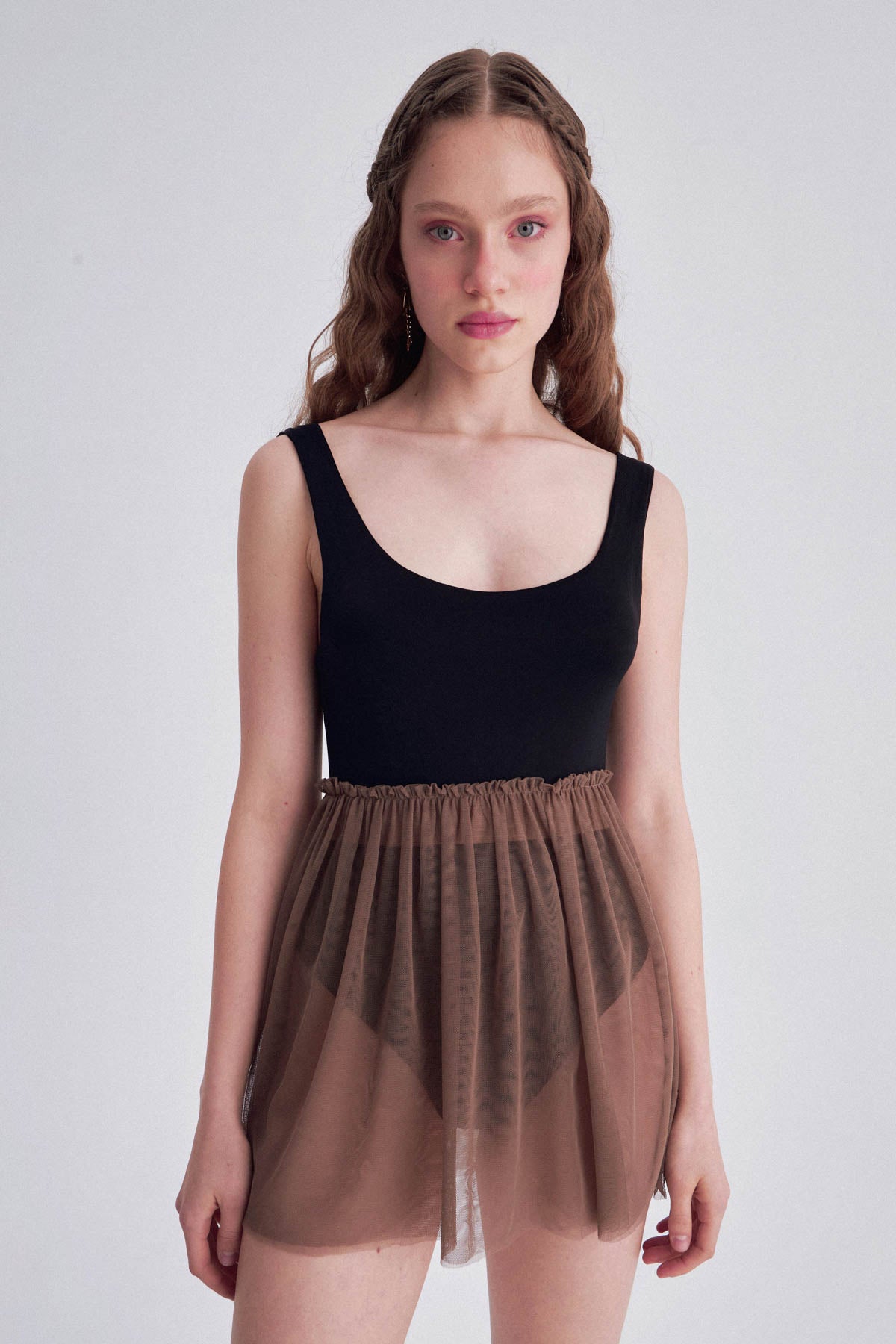 Gri Askılı Yanları Büzgülü Bodysuit