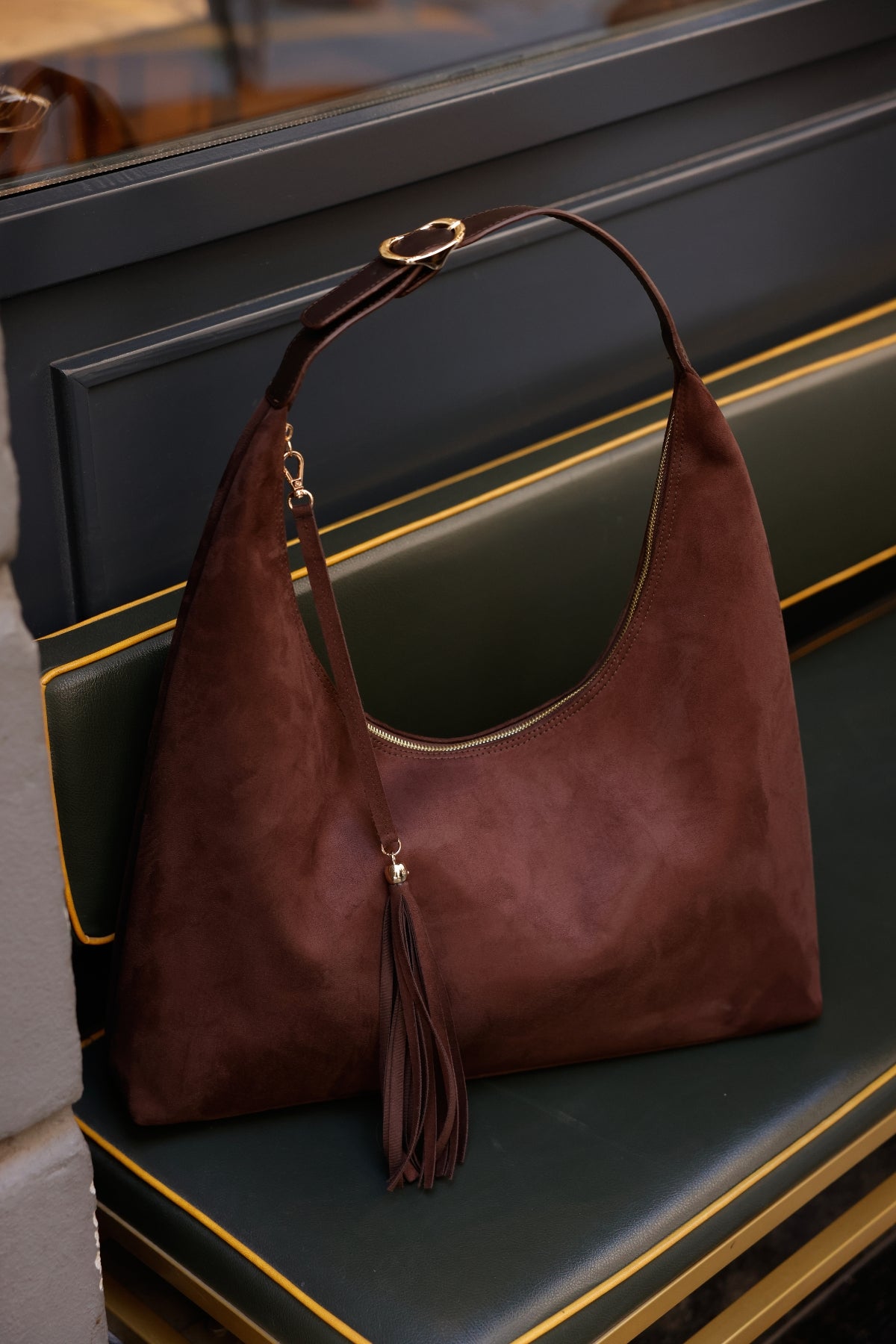 SORRE XL Suede Omuz Çantası | Kahverengi