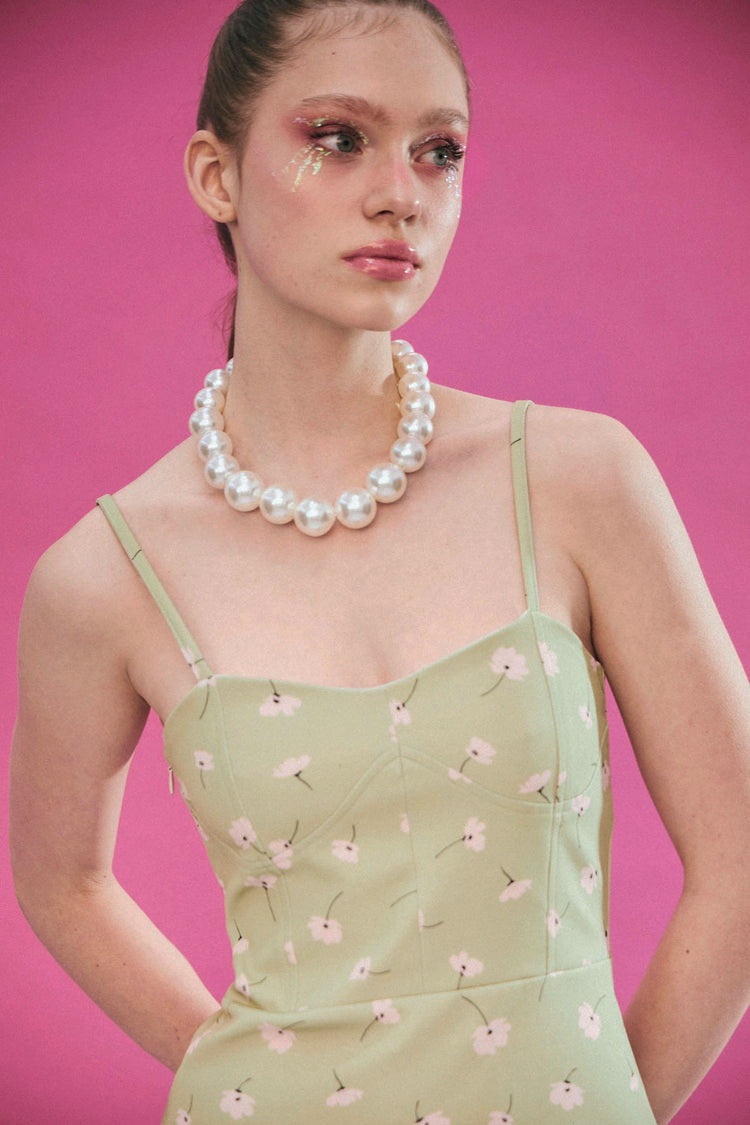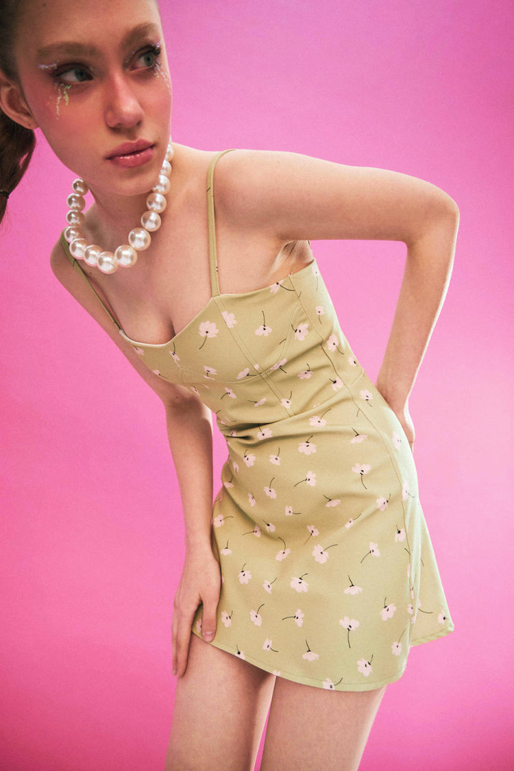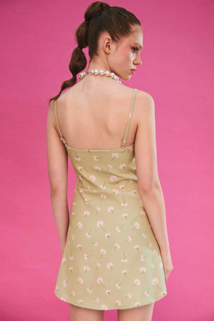 KAIA Yeşil Çiçek Desenli Askılı Mini Elbise