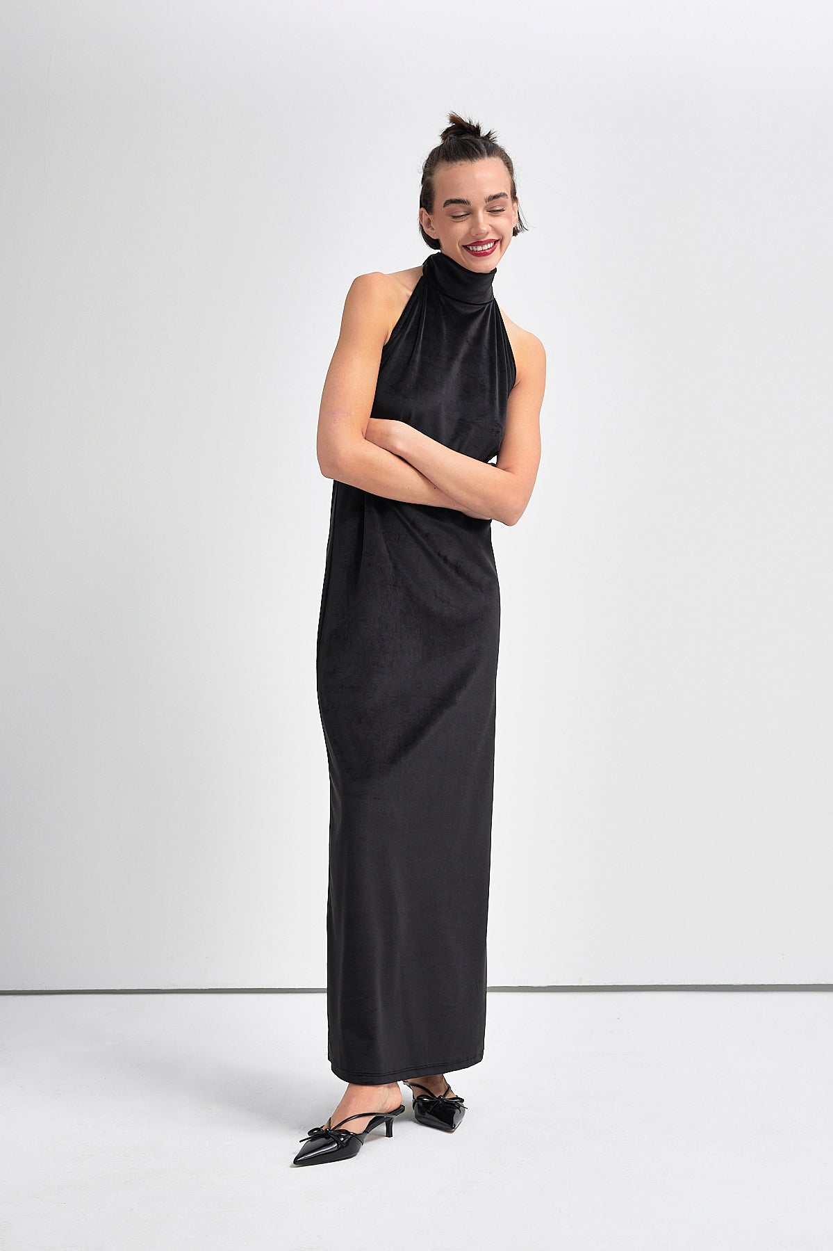 NINA Boyundan Bağlamalı Kadife Elbise