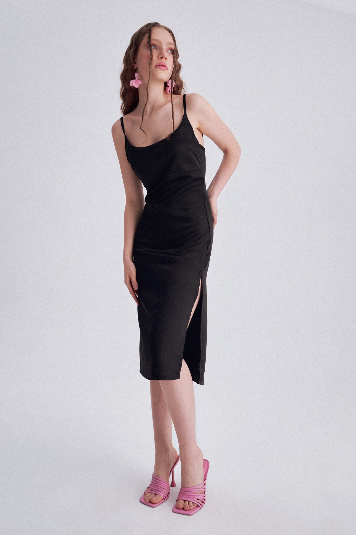 NERISSA Siyah Yanı Büzgülü Asimetrik Elbise