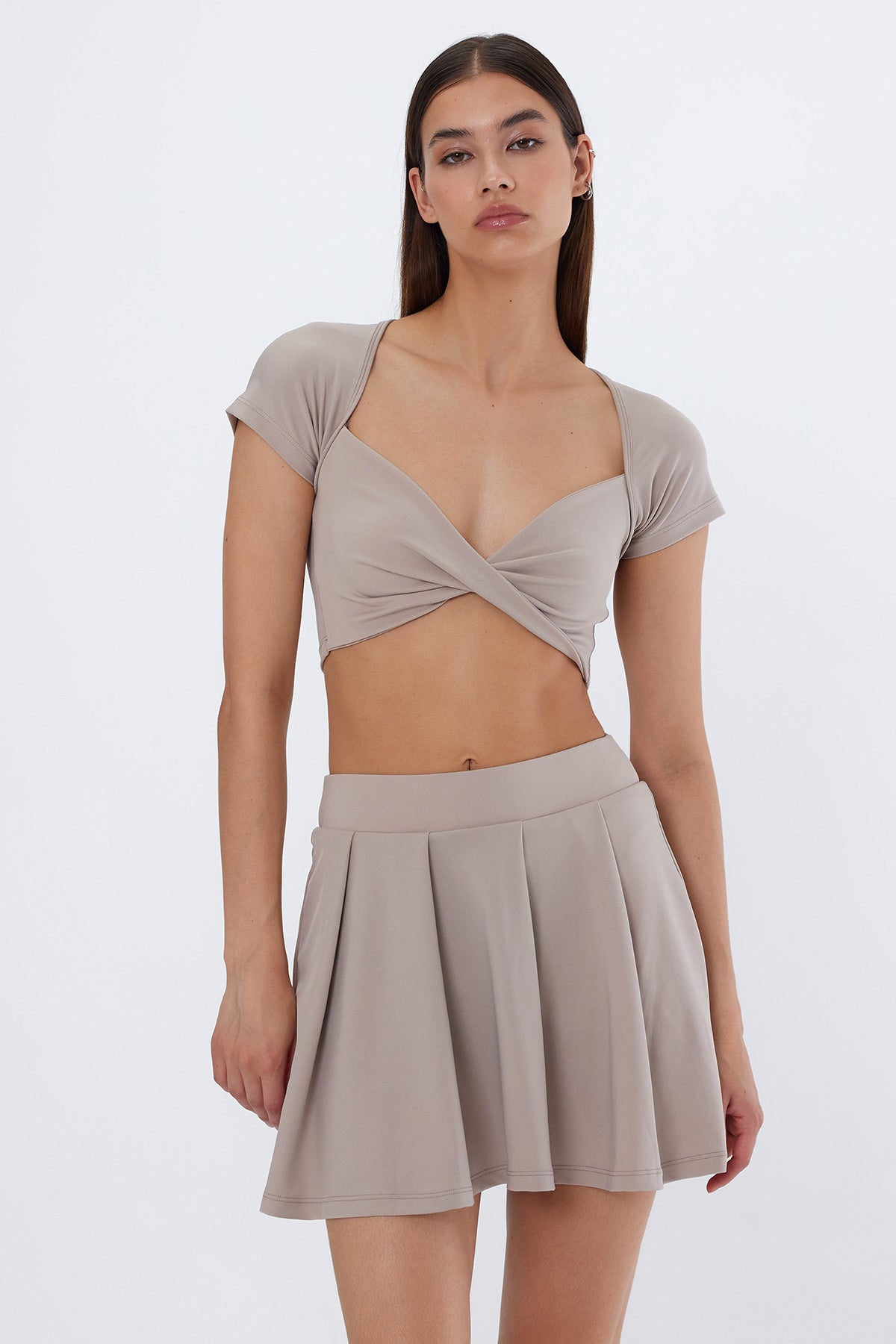 LEDA Bej Pileli Şort Etek