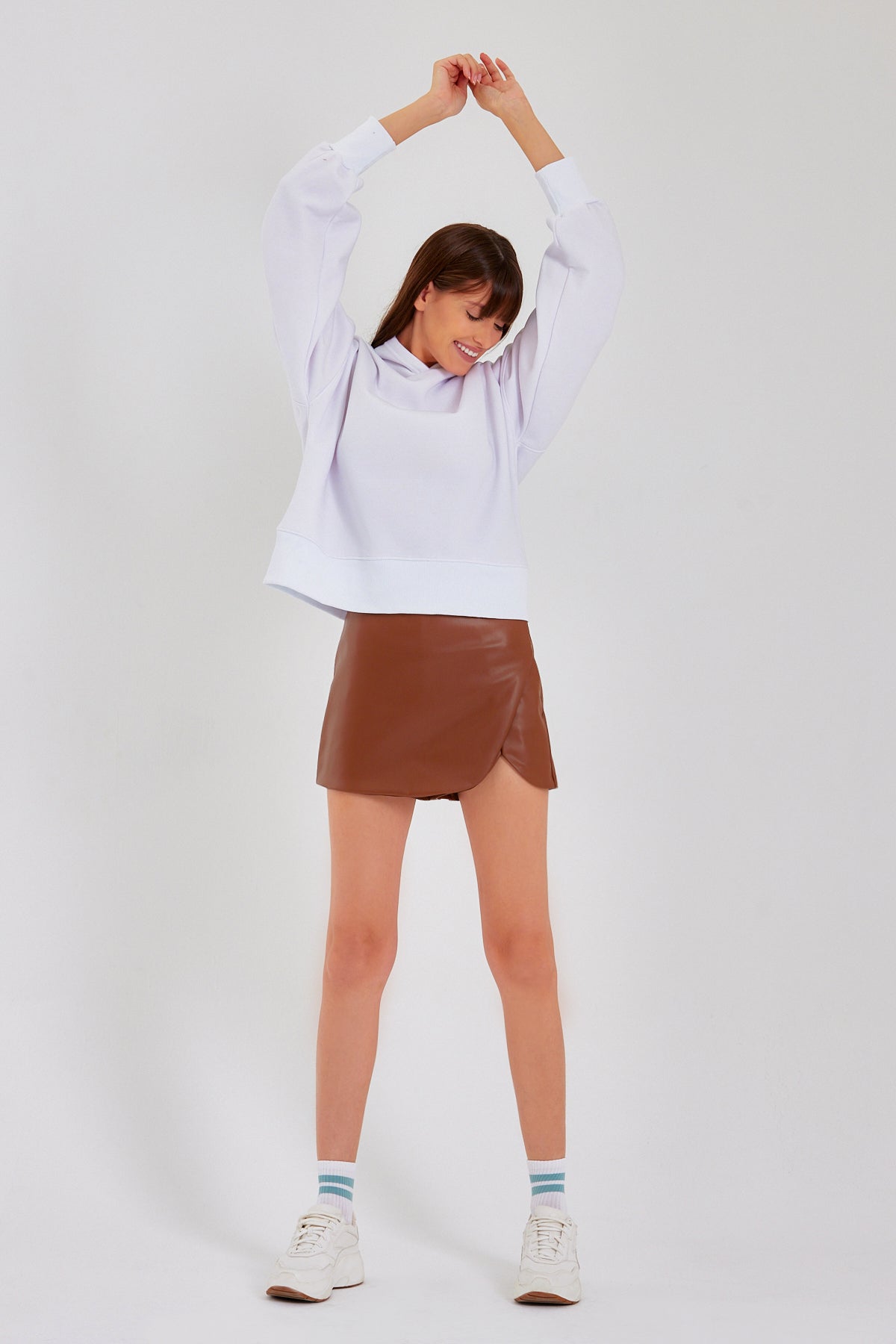 LEAH Kahverengi Şortlu Deri Etek