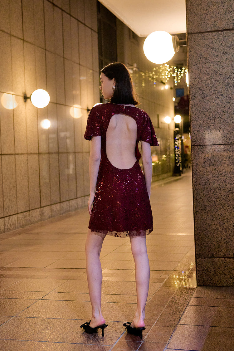 BLUSH Payetli Sırtı Açık Elbise | Bordo