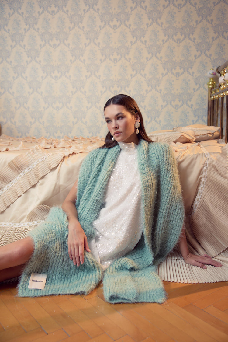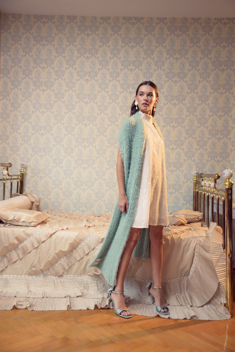 Mankenin ölçüsü: Boy: 1.72 cm, Göğüs: 83 cm, Bel: 58 cm, Basen: 87 cm, Beden: 34