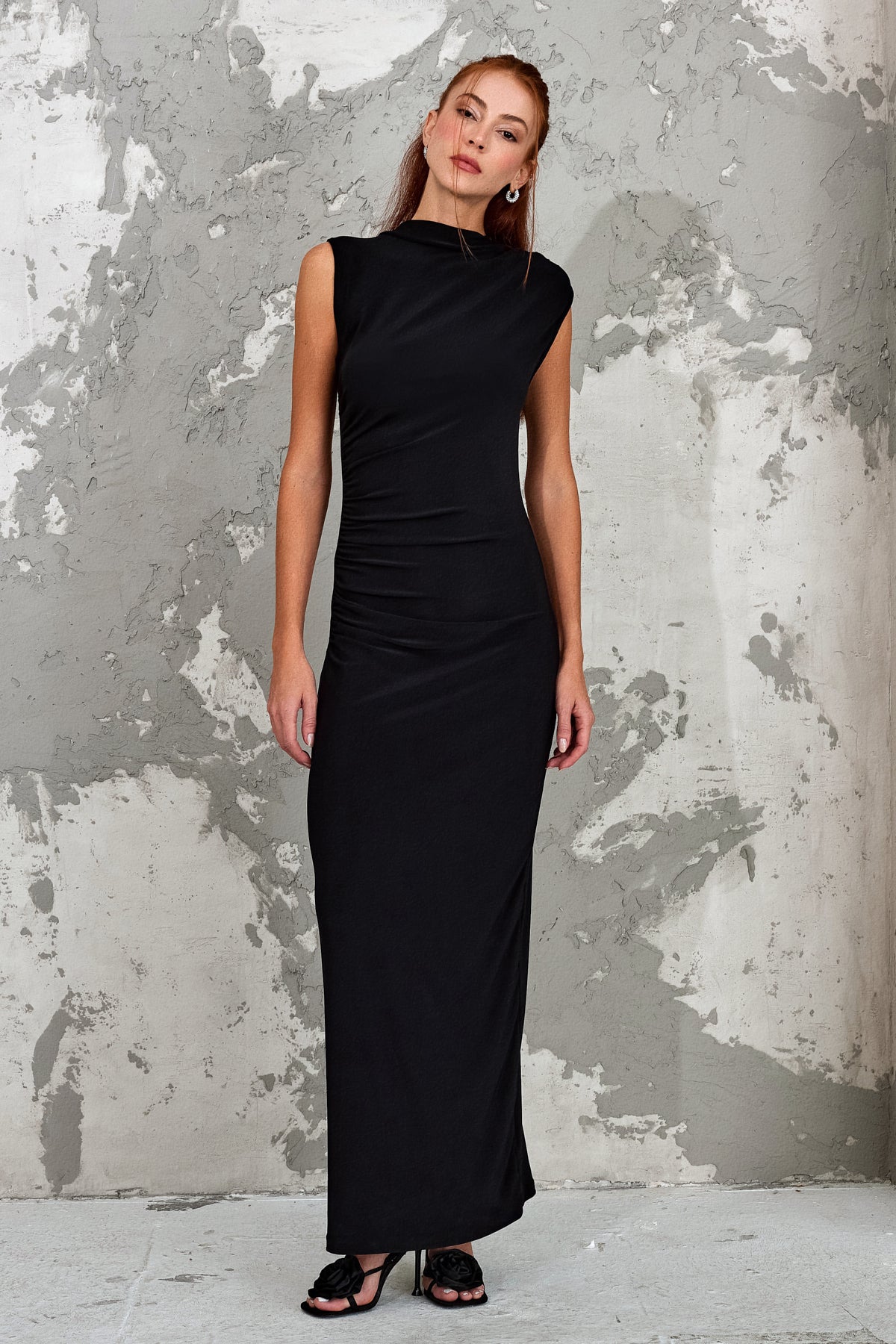 NERISSA Siyah Yanı Büzgülü Asimetrik Elbise