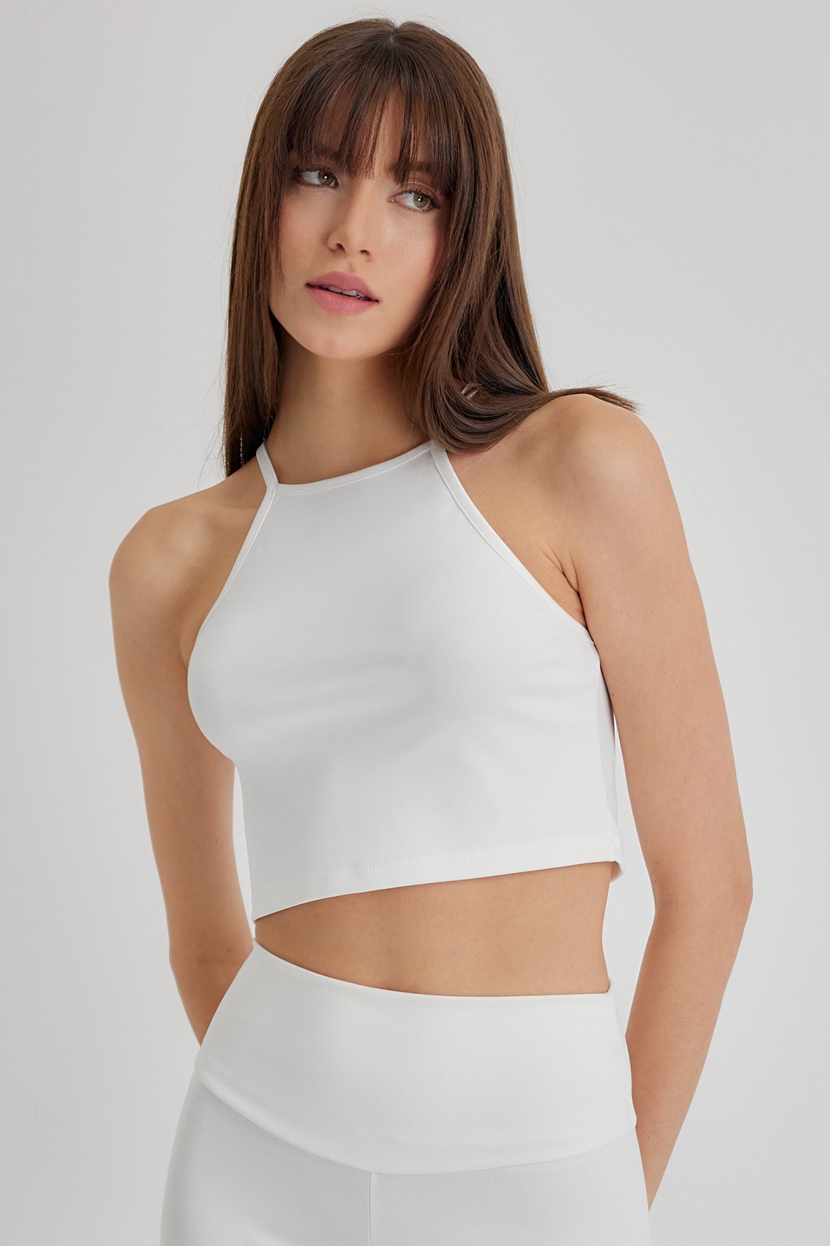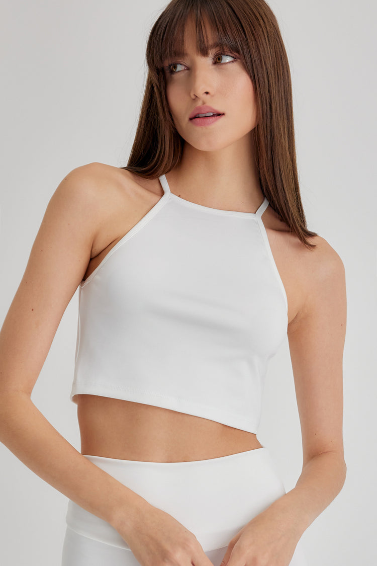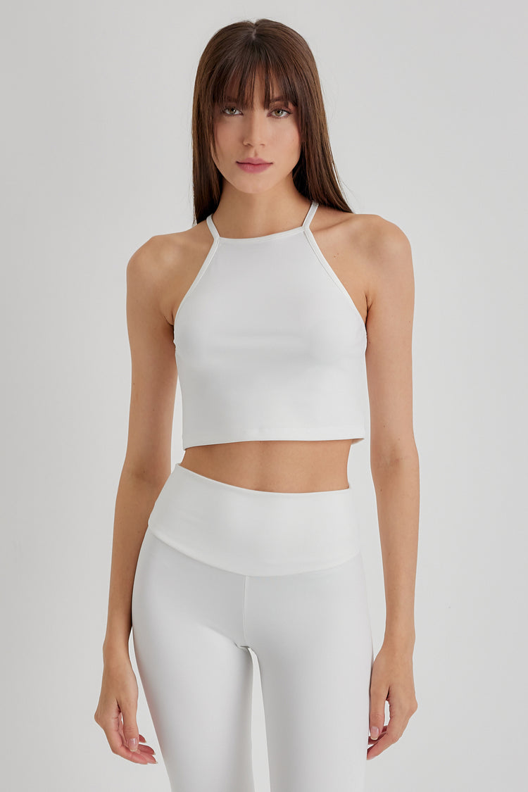 FELICIA Beyaz Bisiklet Yaka Crop Top