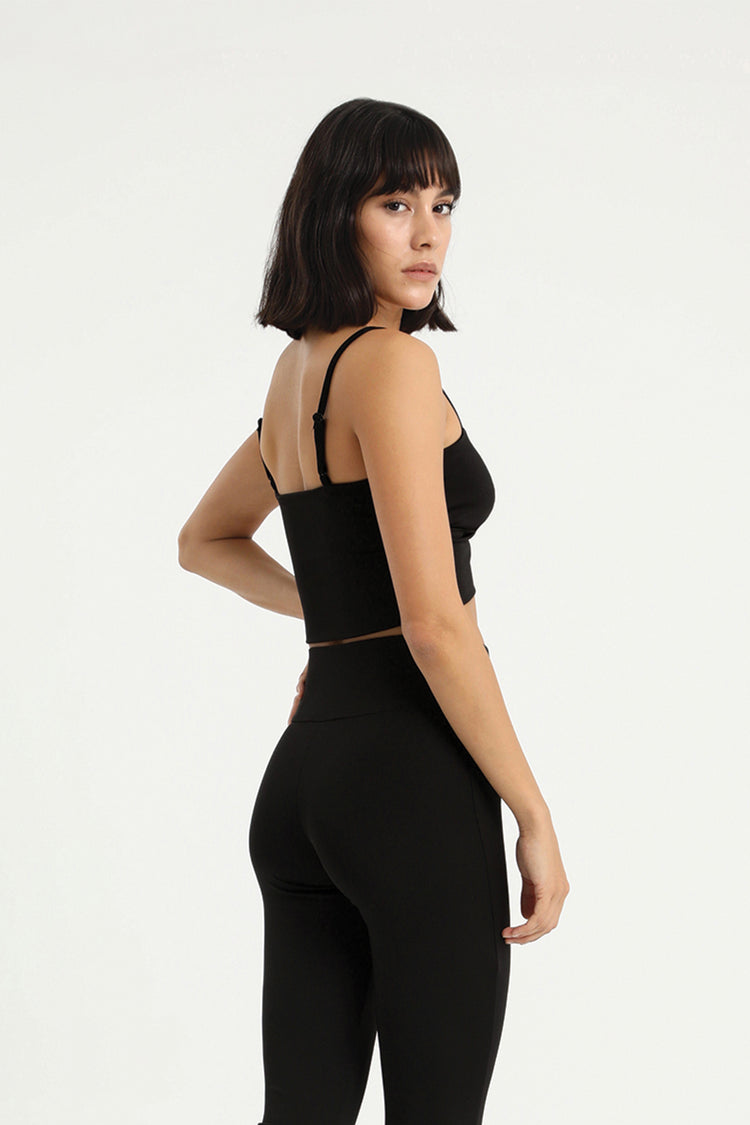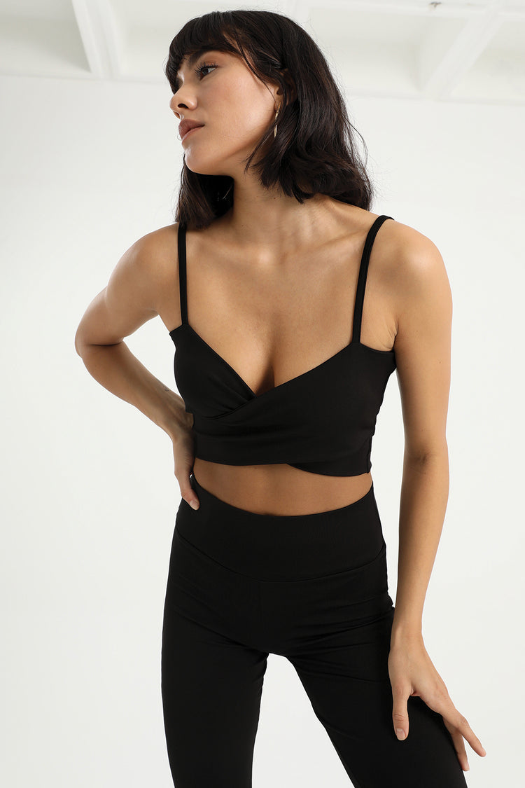 DIONE Siyah Çapraz Askılı Crop Top