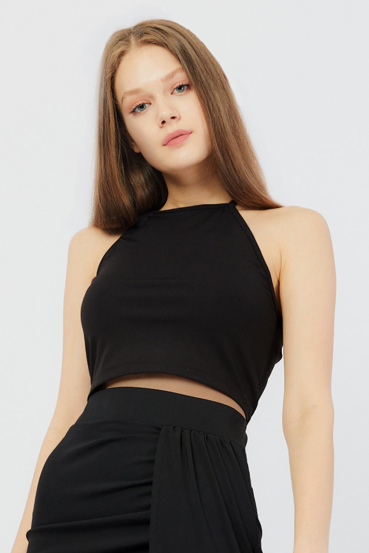 DORIS Siyah Askılı Crop Top