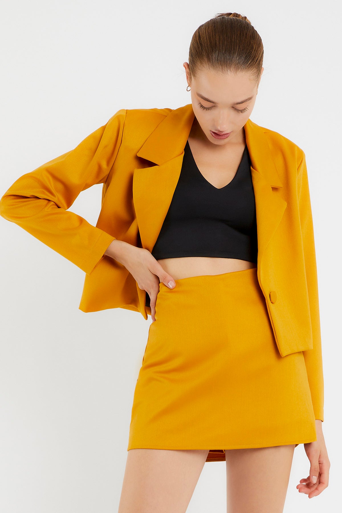 LENA Buz Mavi Yırtmaçlı Mini Etek