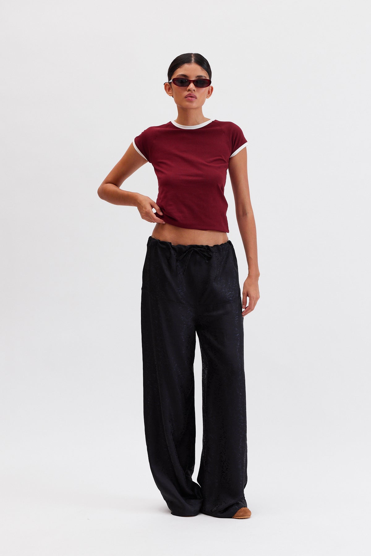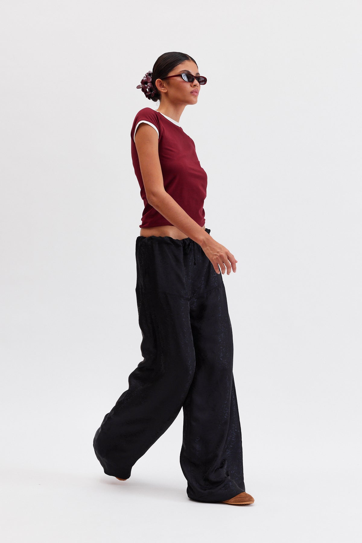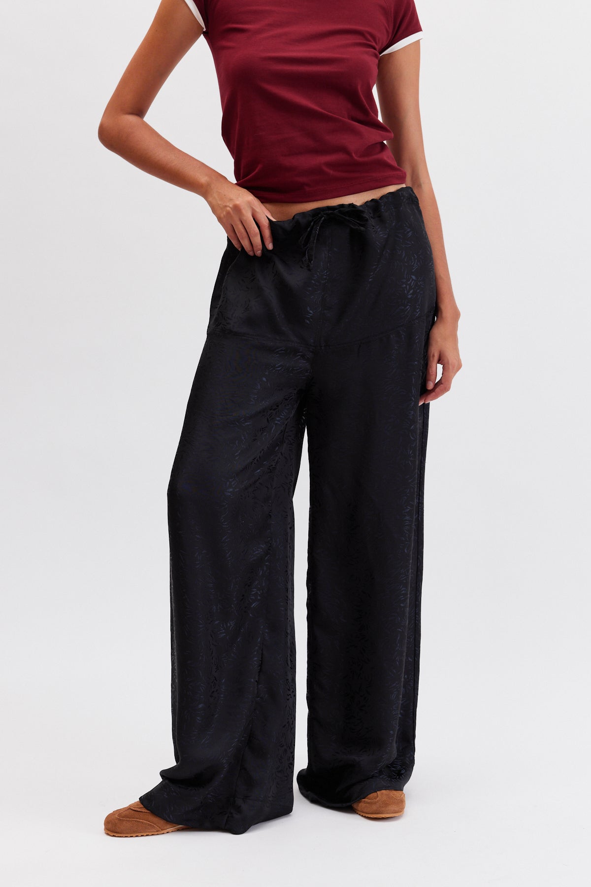 CHERRY Beli Lastikli Dökümlü Pantolon