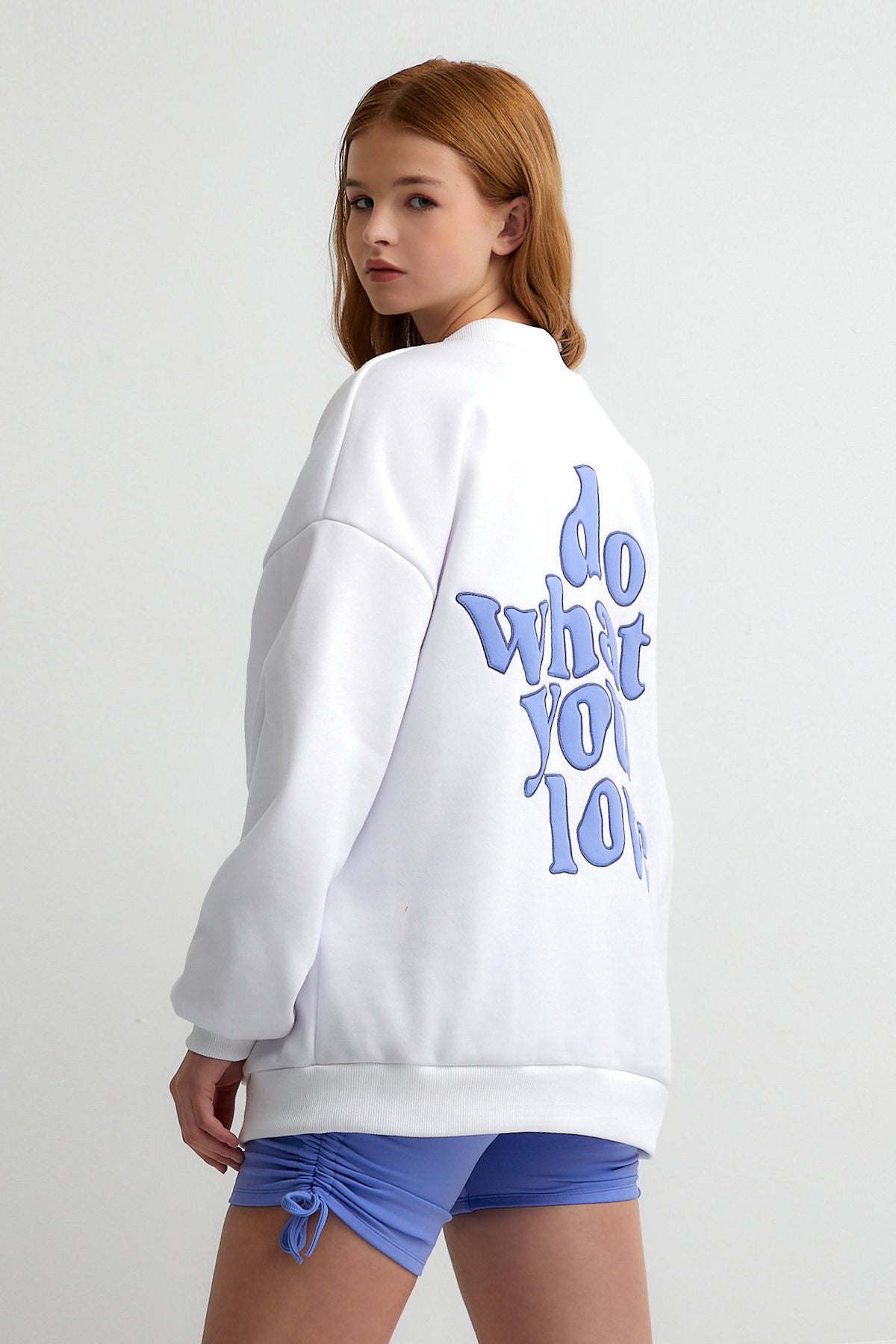 Beyaz Do What You Love Nakışlı Oversize Sweatshirt