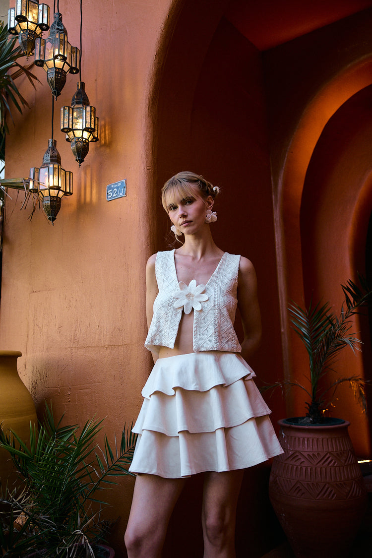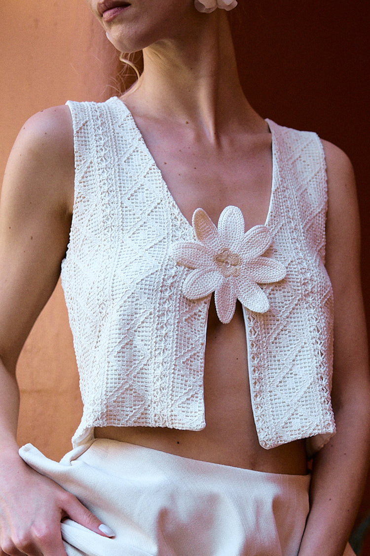 TROPEZ Çiçek Detaylı Dantelli Yelek